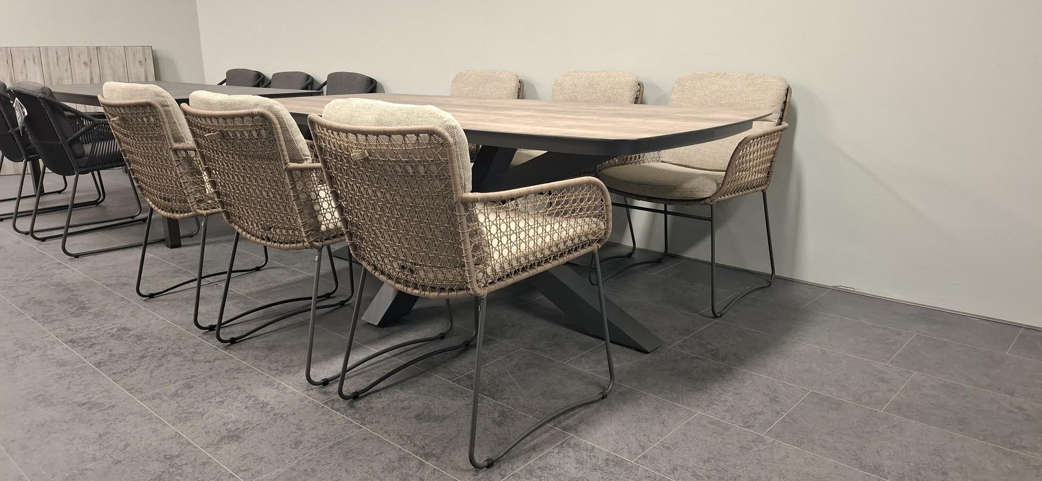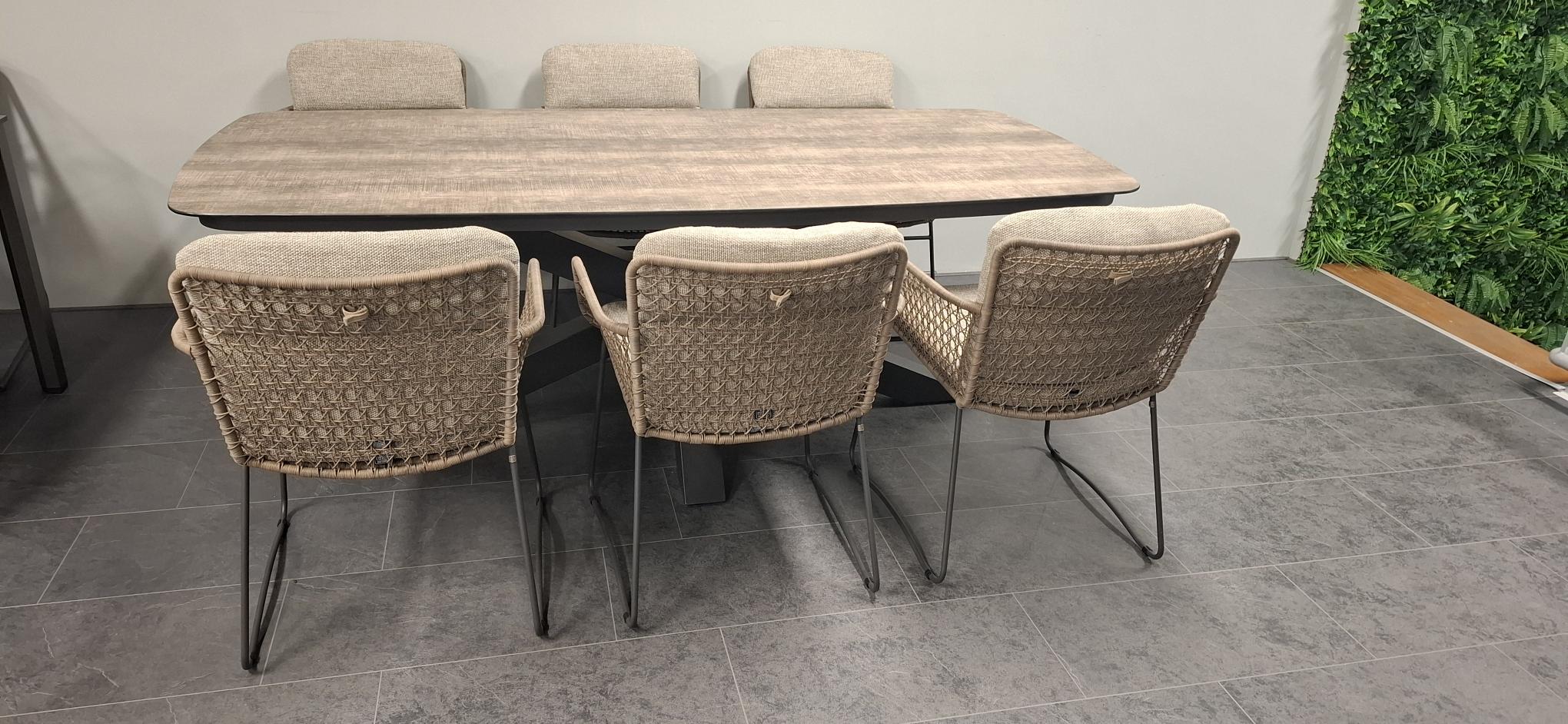 De elegante lijnen en het ambachtelijke vlechtwerk geven deze set een exclusieve uitstraling die moeiteloos past in zowel moderne als klassieke tuinen. De royale stoelen bieden optimaal zitcomfort dankzij de ergonomische vorm en luxe kussens, waardoor je urenlang kunt natafelen in alle comfort.