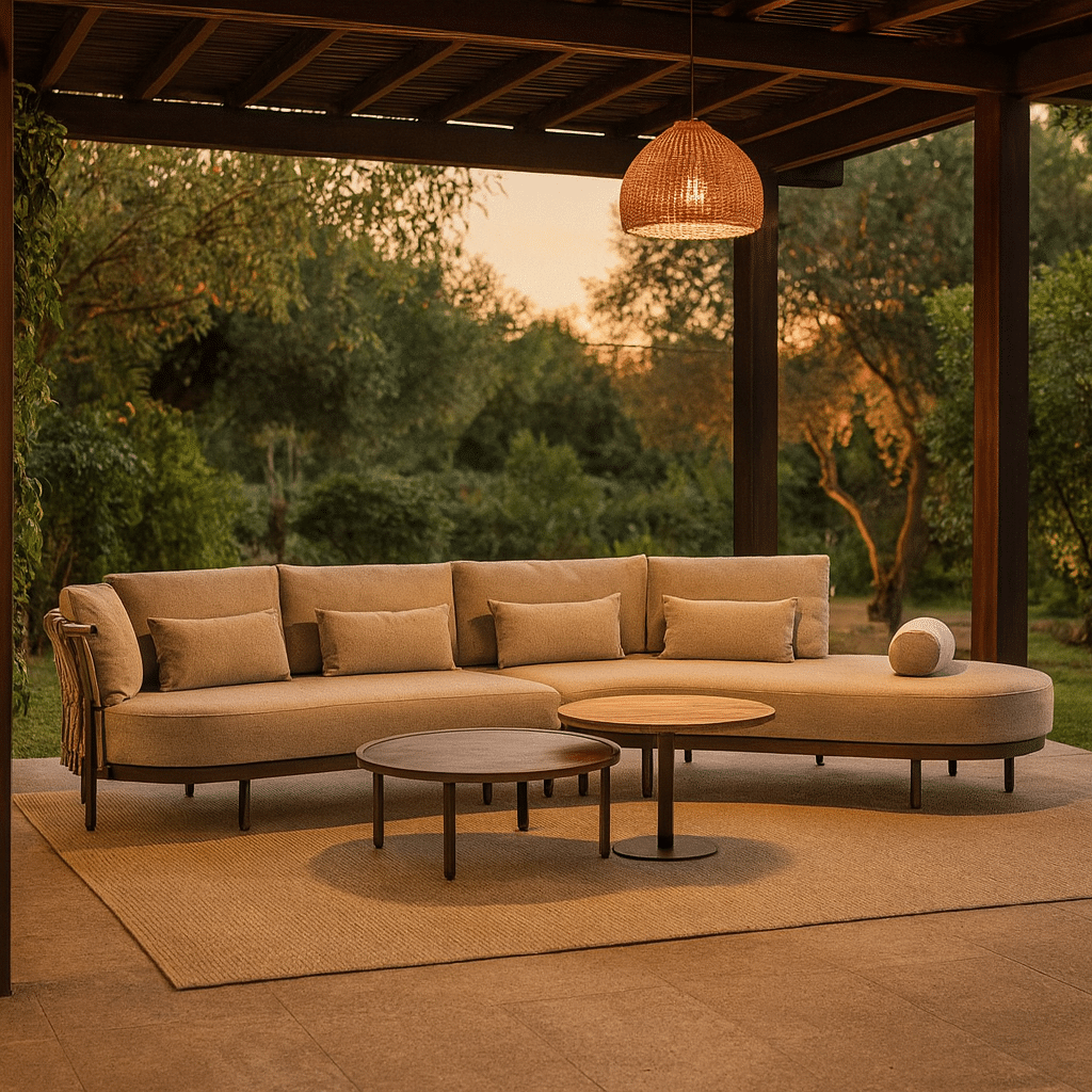 De Callisto Baru loungeset brengt rust, elegantie en comfort samen in één prachtig ontwerp. Met zijn organische vormen en verfijnde rope-afwerking straalt deze set pure harmonie uit – alsof hij speciaal is ontworpen om op te gaan in de natuur om je heen.