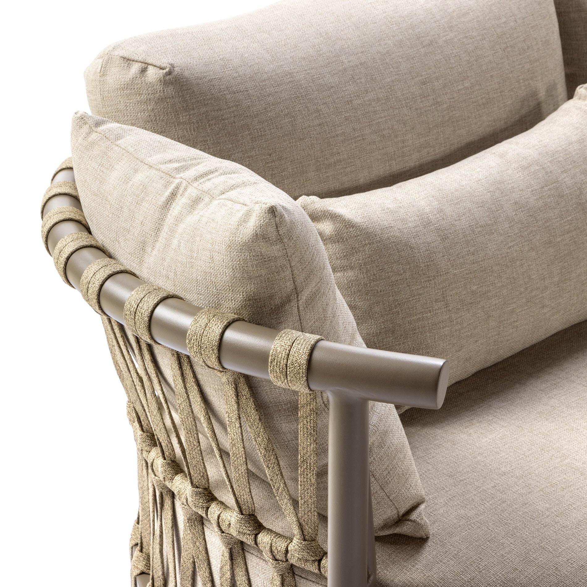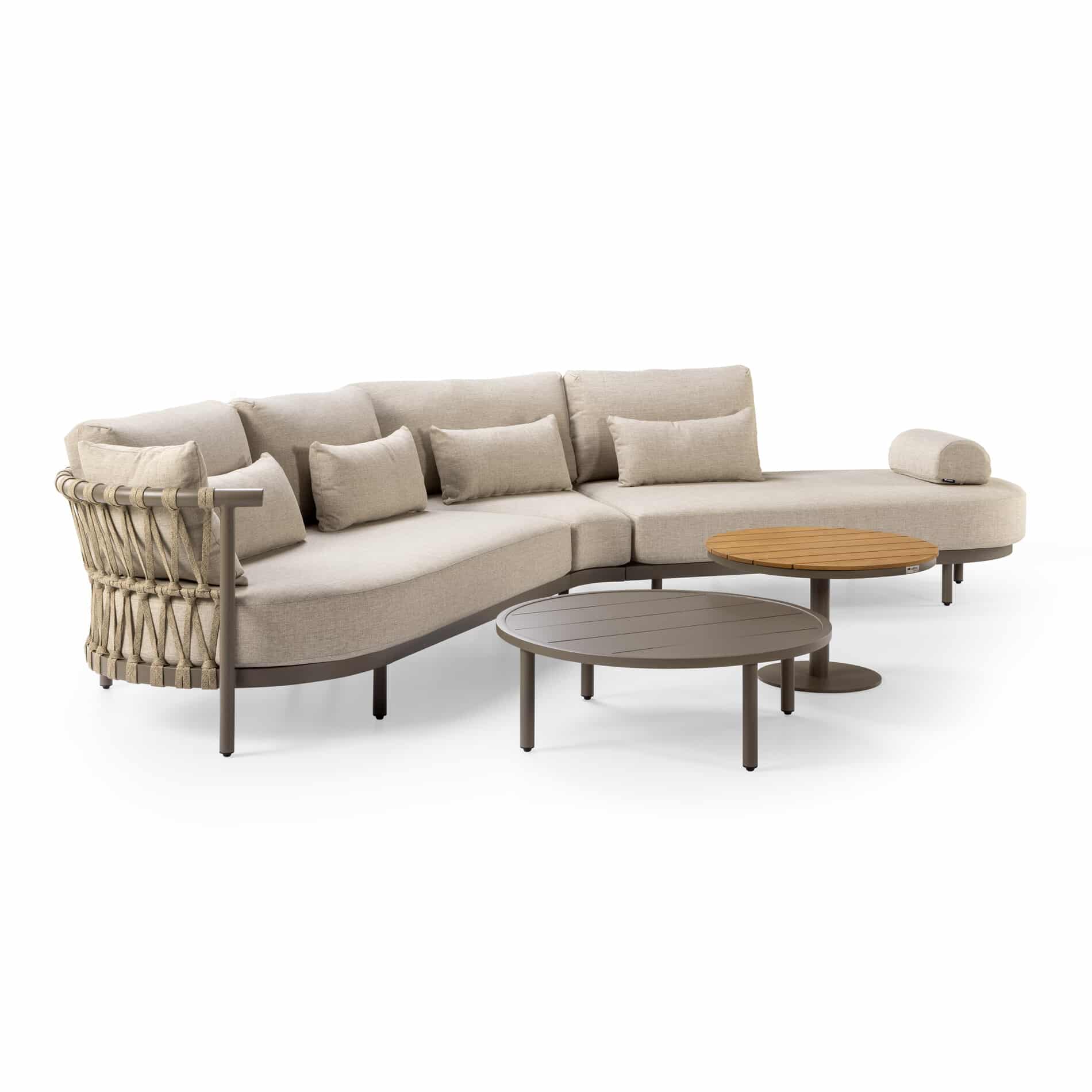 Het stevige aluminium frame zorgt voor stabiliteit en duurzaamheid, terwijl de zachte, afgeronde lijnen van het rope zorgen voor een warme en eigentijdse uitstraling. De royale Olefin kussens bieden ultiem zitcomfort en zijn weerbestendig, zodat je zorgeloos kunt genieten – of het nu gaat om een zonnige middag of een zwoele zomeravond.