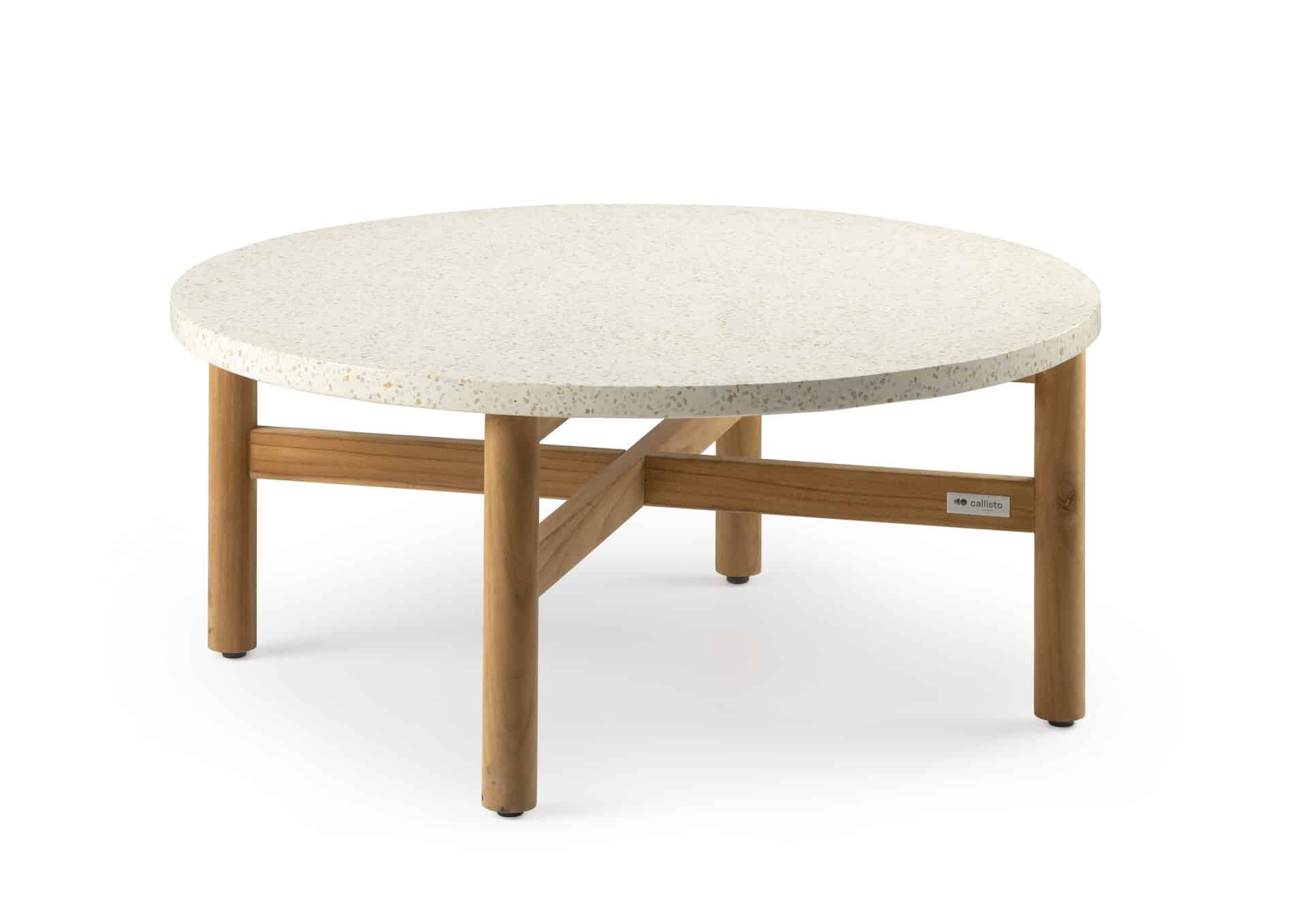 Deze stijlvolle bijzettafel van het merk Callisto combineert een elegant tafelblad van terrazzo-steen met een warm teakhouten onderstel, waardoor hij de perfecte mix biedt van luxe uitstraling en natuurlijke materialen. Het ronde blad (Ø80 cm) is optimaal geschikt naast een loungestoel of bank — ideaal voor je drankje, boek of decoratie. Dankzij het teakhouten frame is de tafel weerbestendig en geschikt voor buitengebruik, terwijl het terrazzo-blad een moderne, premium Touch toevoegt.