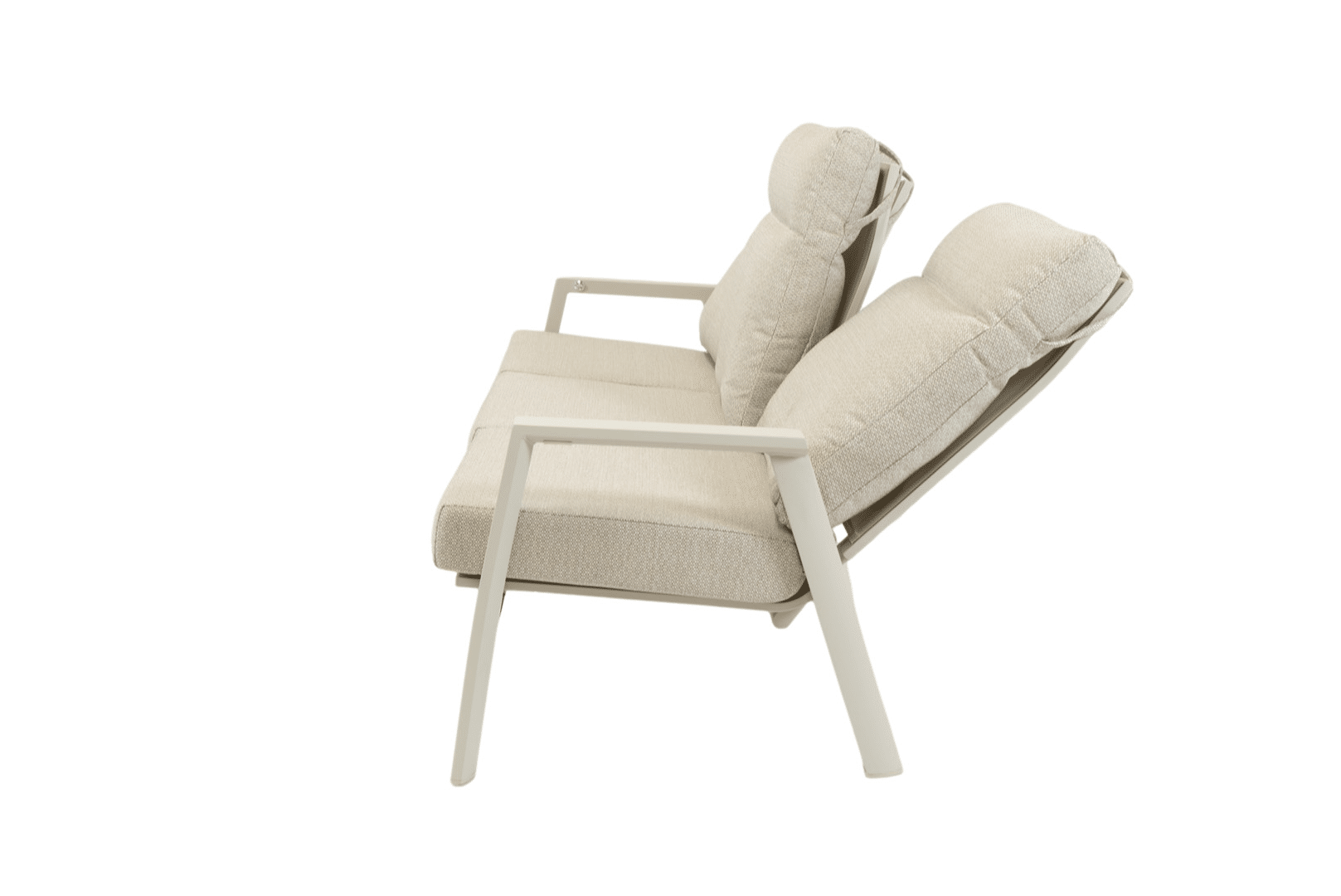 Met de traploos verstelbare rugleuning, bediend via een soepele gasveer, stel je de ideale loungepositie in. De extra dikke All Weather kussens zorgen voor een heerlijk zacht zitcomfort, zelfs na een regenbui.