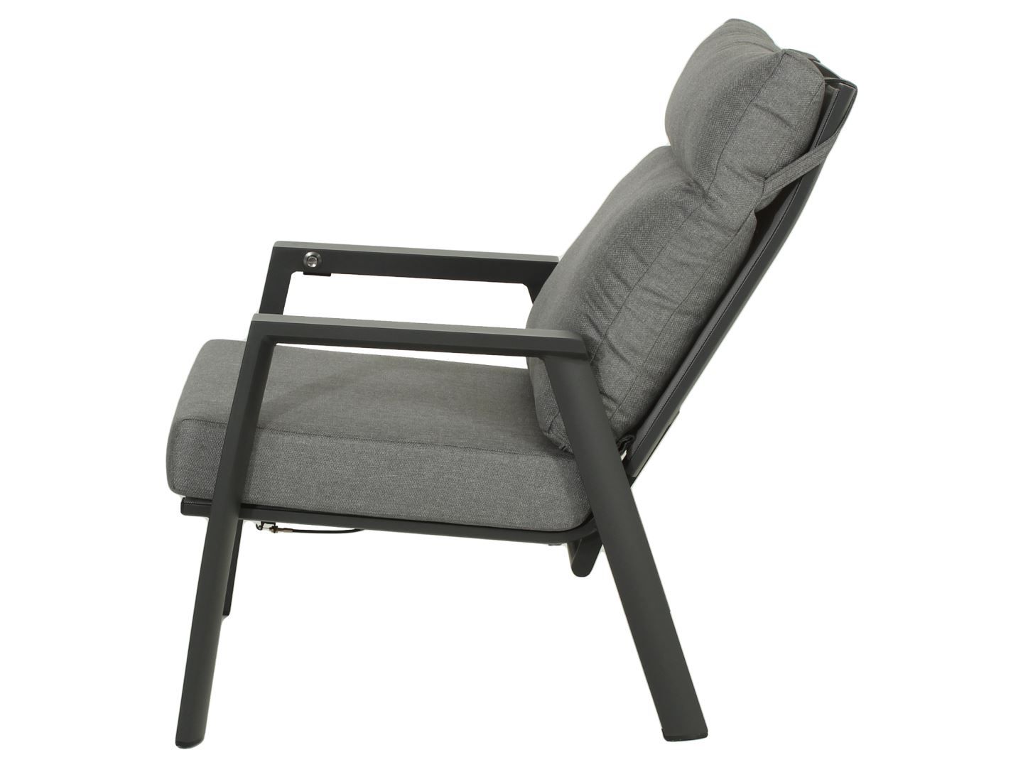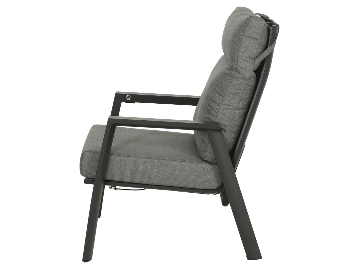 Met de traploos verstelbare rugleuning, bediend via een soepele gasveer, stel je de ideale loungepositie in. De extra dikke All Weather kussens zorgen voor een heerlijk zacht zitcomfort, zelfs na een regenbui.
