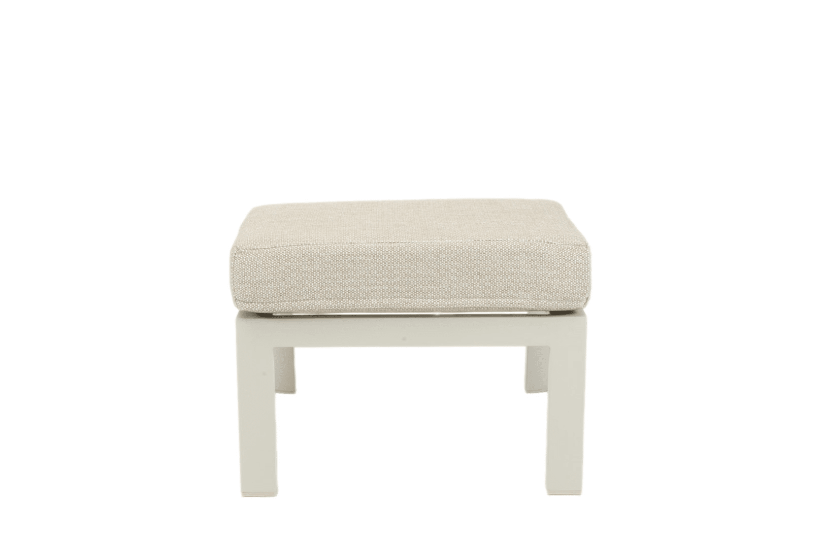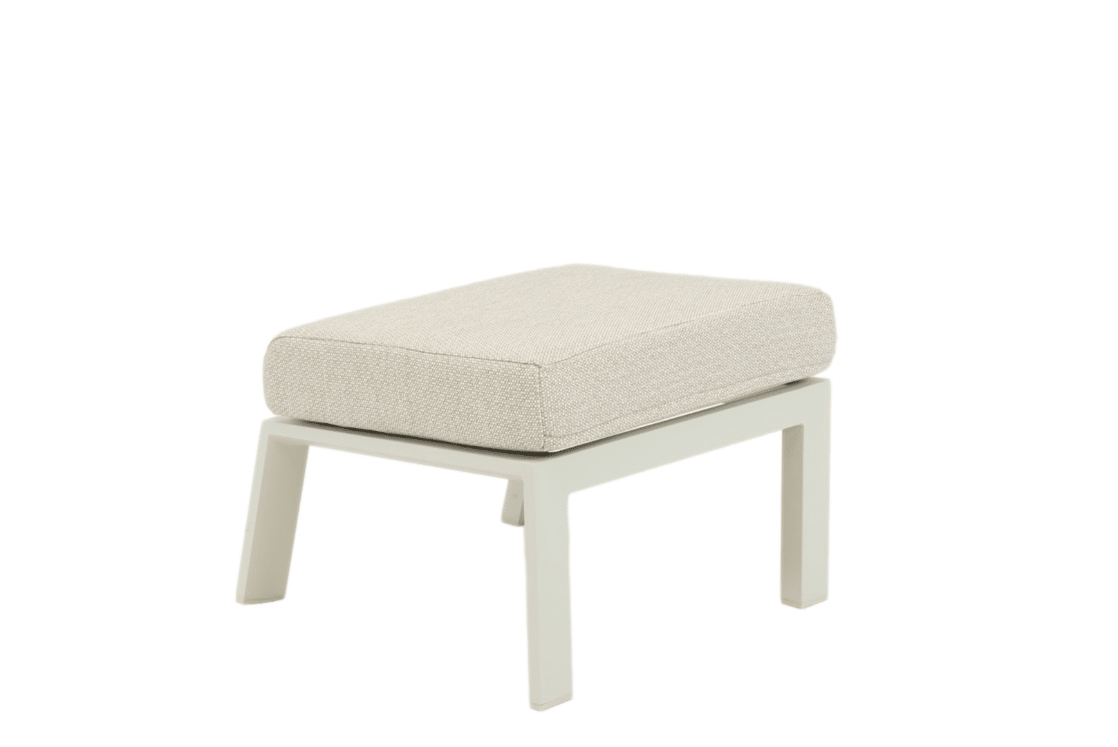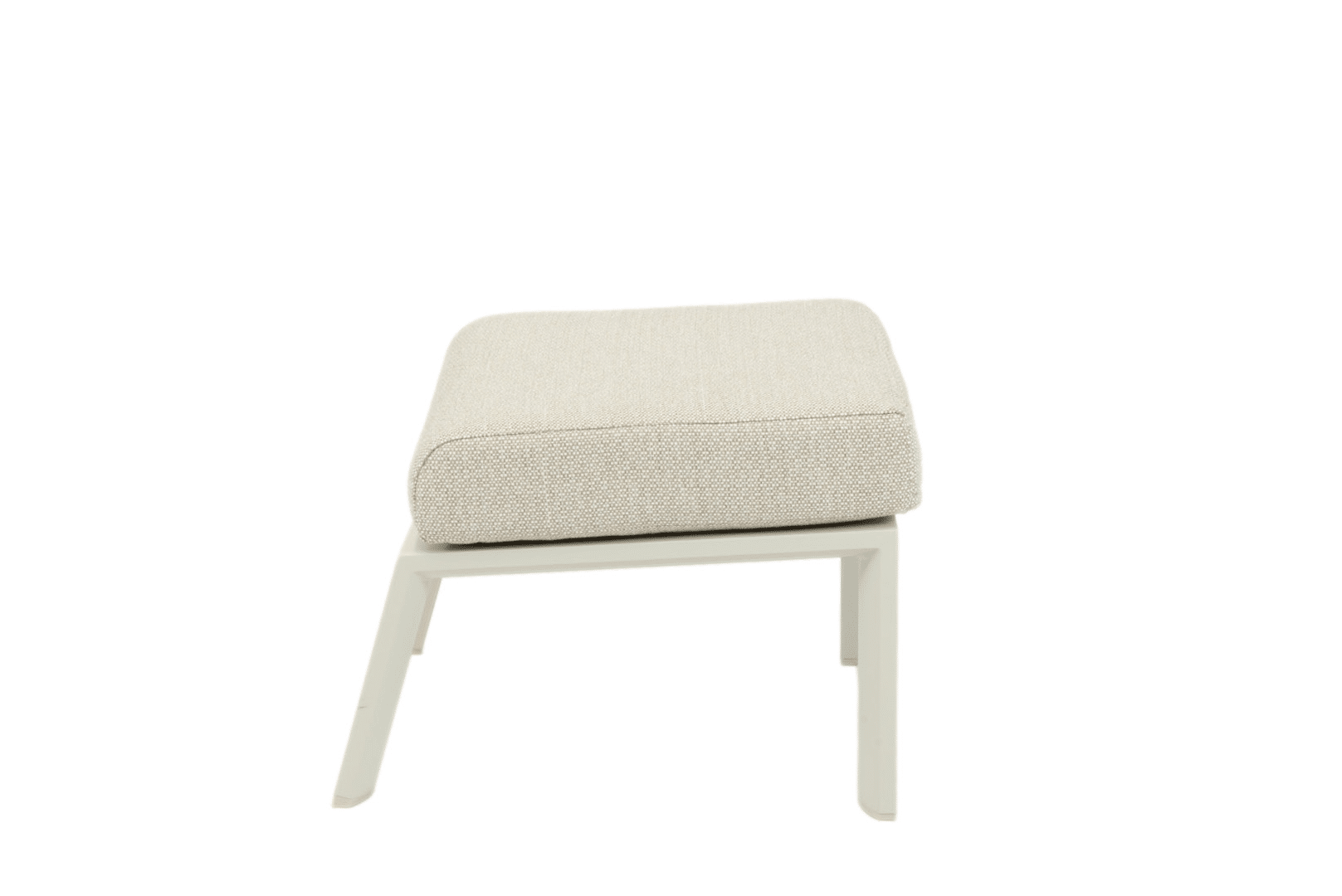 Stijlvolle voetenbank in champagnekleur, perfect als aanvulling op de Aruba loungestoel. Onderhoudsvriendelijk, weerbestendig en voorzien van een comfortabel kussen. Ideaal als voetensteun of extra zitplek.
